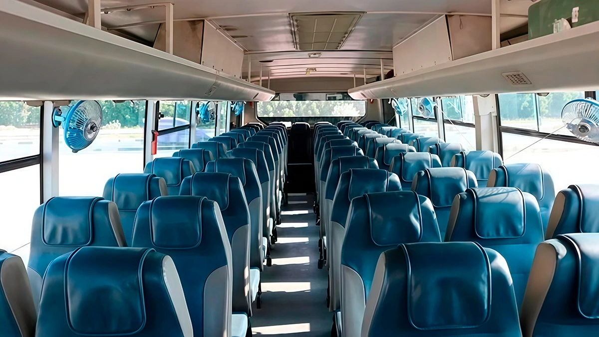 If you are looking for spacious, comfortable, and cost-effective bus rental in Ras Al Khaimah, the Ashok Leyland is the ideal solution for your transportation needs. This economy-class bus has a capacity of 66 seats, making it perfect for large groups, events, school trips, or corporate travel. With a rate of 150 AED per hour and a minimum rental period of 5 hours, it’s one of the most affordable bus hire options in the city.